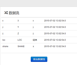2. 在设备详情页中,新增5条数据流,分别命名为:x、y、z、loc、shake,如下: